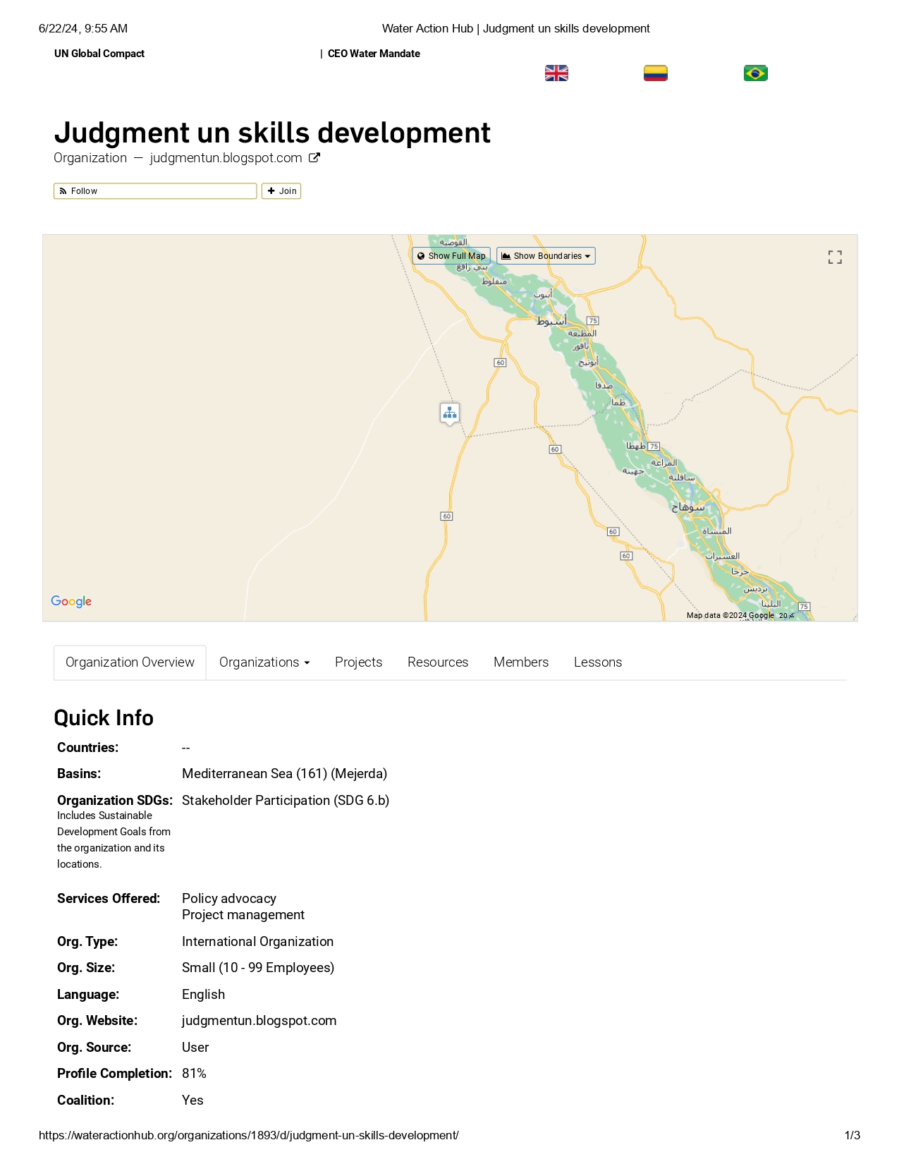 الاسم الرسمي الكاملمنظمة جادجمينت يوإن لتنمية المهارات (Judgment UN for Skills Development)